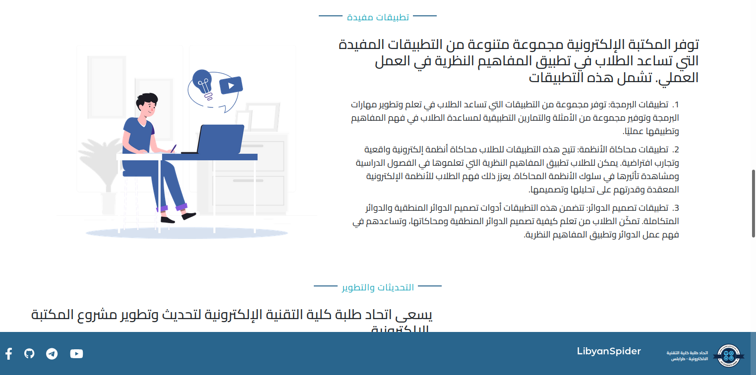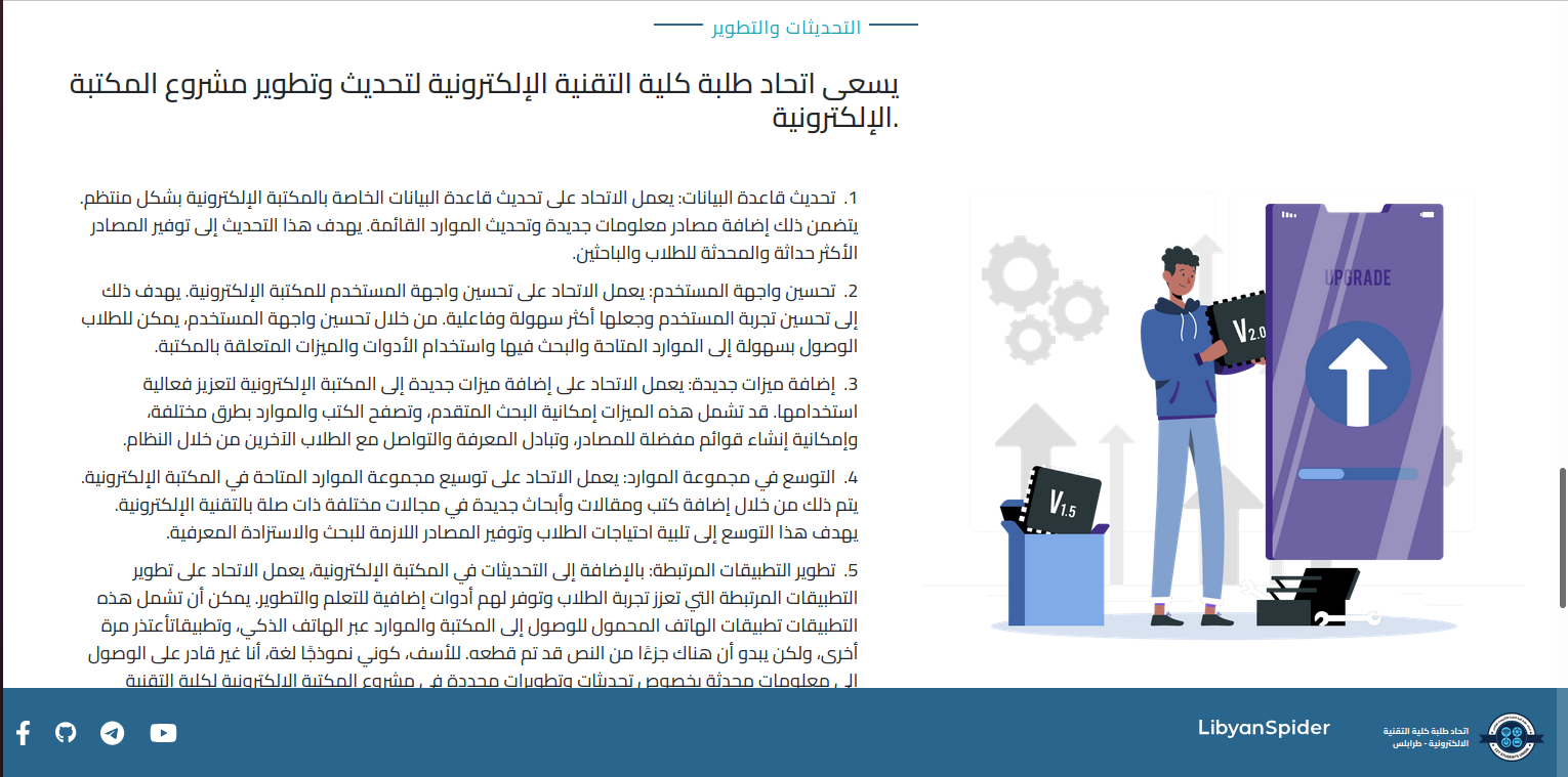 The Electronic Library project aims to create a comprehensive educational platform for students at the College of Electronic Technology in Tripoli. The library provides access to curricula for all departments and academic levels, as well as a wide range of questions and useful applications for training and professional development. I was one of the programming team members responsible for designing the user interfaces.